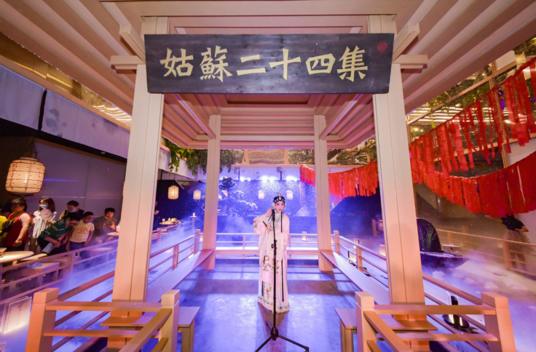姑苏二十四集是此行意想不到的地方。平淡无奇的商场里竟然藏着这么好玩的宝藏集市。上下一共两层,分别在商场的4楼和5楼,装修别致古风盎然,复苏的苏式情调,设计还有点大唐风,经常有穿着古装的武士们在里面执勤巡逻,云雾缭绕的水景,小桥树木乌篷船,鸟语花香灯笼挂,怀旧的江南水乡风情随处可见,关键还在室内,凉爽可人一点也不会晒到!如果是带着孩子的,里面还有一个萌宠区,小动物们多的看不过来!如果喜欢旗袍汉服,这里即可以租借(按小时收费价格很合算)也可以自己穿来拍照,有无数的场景值得留影。里面的小吃丰富,商场里的饭店也非常多,在这里吃饭真的不发愁的。集市外还有后现代风的天空书城,在这里你只会遗憾时间不够多!