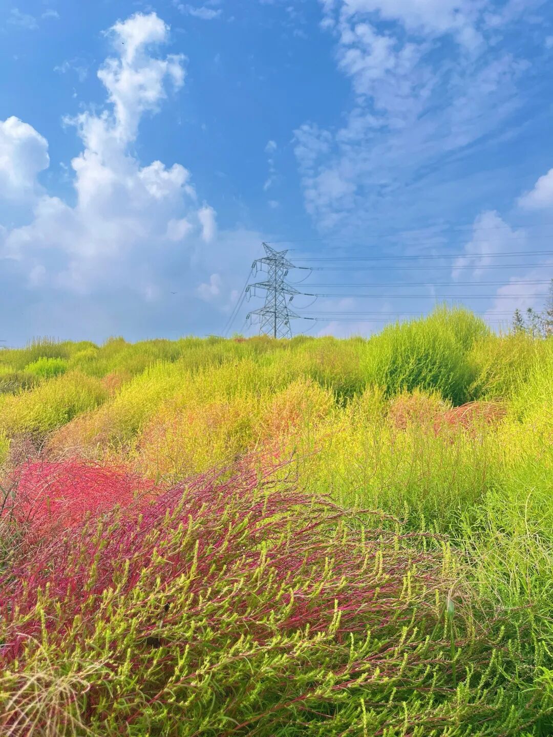 昆山的太仓塘畔,慧聚寺旁,秋天呈现出别样的粉色风情。近日,这里滨水公园的百万粉黛乱子草惊艳绽放,构成了一片“梦幻粉”的花海,带来了一场视觉的盛宴。地肤每逢秋衣渐浓,其枝叶转为深红,犹如火焰般绚烂,为秋日增添了一抹别样的色彩。
