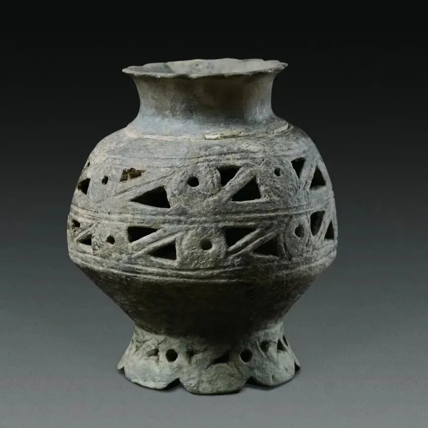 △双层镂孔花瓣足陶壶