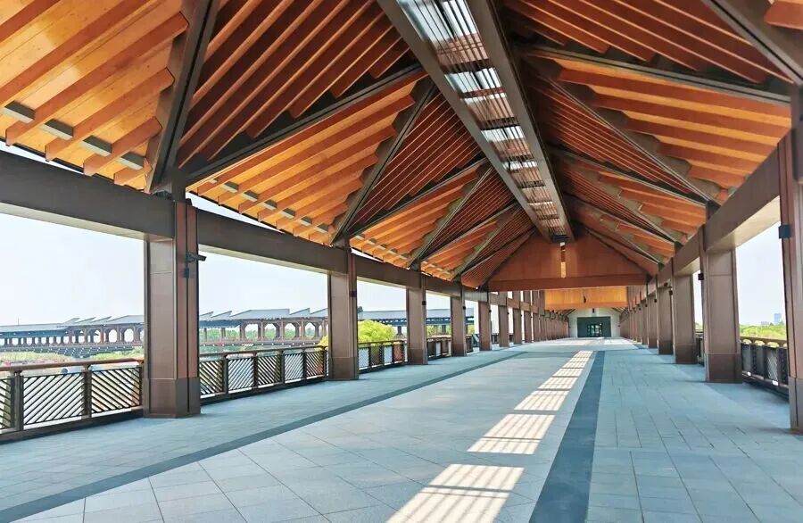 这里融合斗拱、陶板、水院、廊桥等江南元素,被誉为“一颗纽扣”,把行政边界缝隙“缝合”成共享客厅。将来会具备论坛、会展、艺术展览、文化演艺、旅游集散等复合功能。