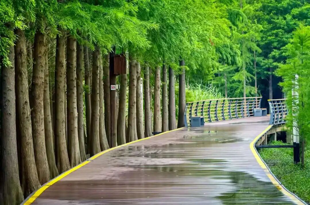乘游船穿梭水森林,观赏落羽杉与池杉林。