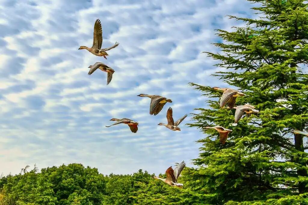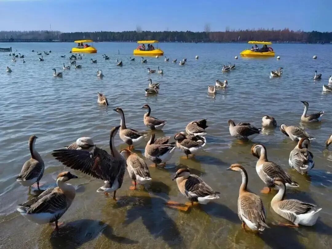 大雁放飞:每日10:30/14:00在观鸟台,数百只大雁贴水飞行。