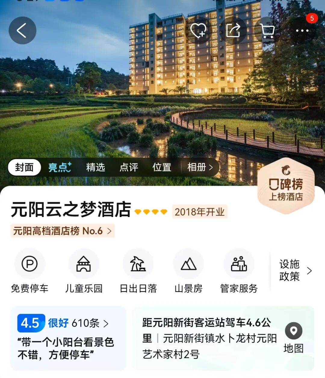 D3元阳云之梦酒店或同级一晚
