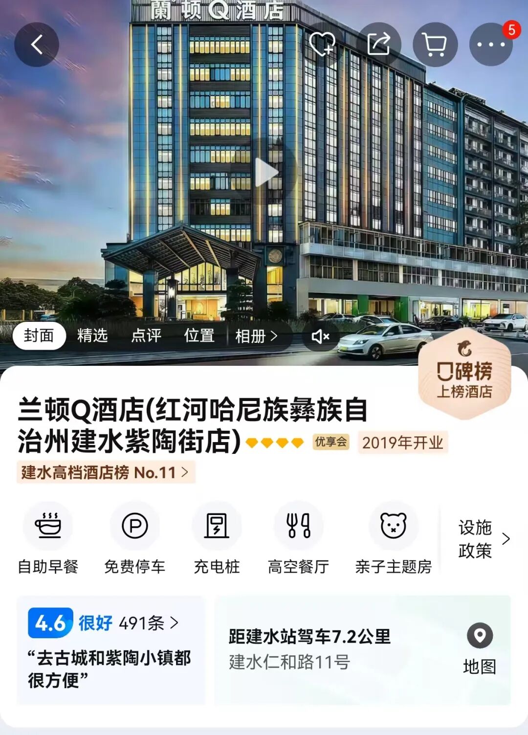 住宿:兰顿Q酒店(红河哈尼族彝族自治州建水紫陶街店)或同级