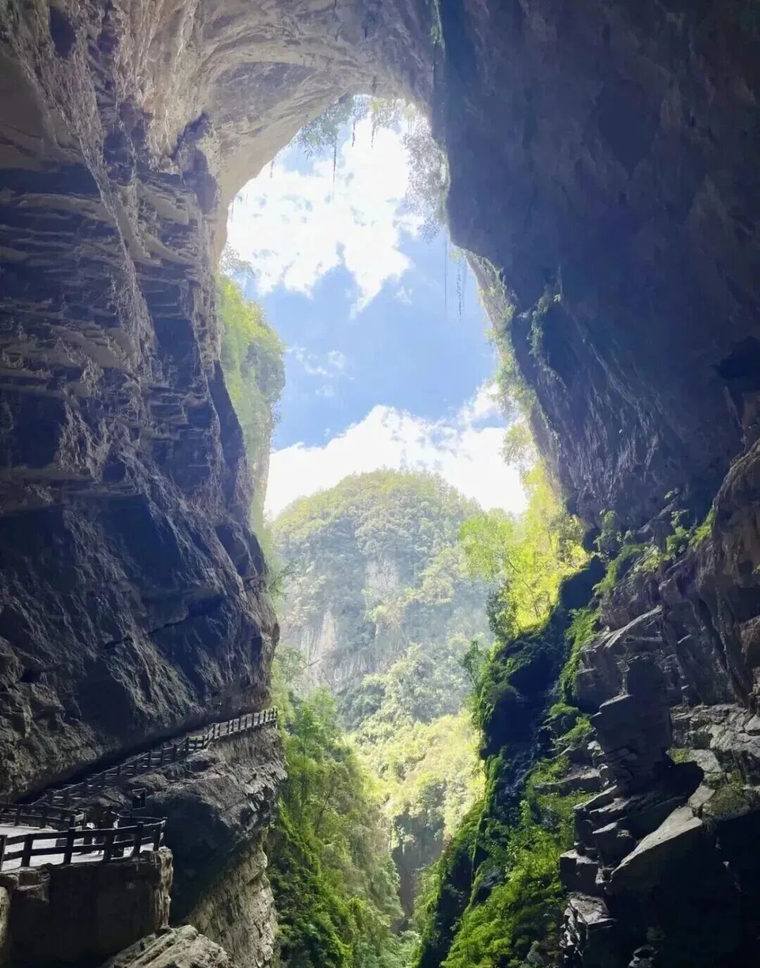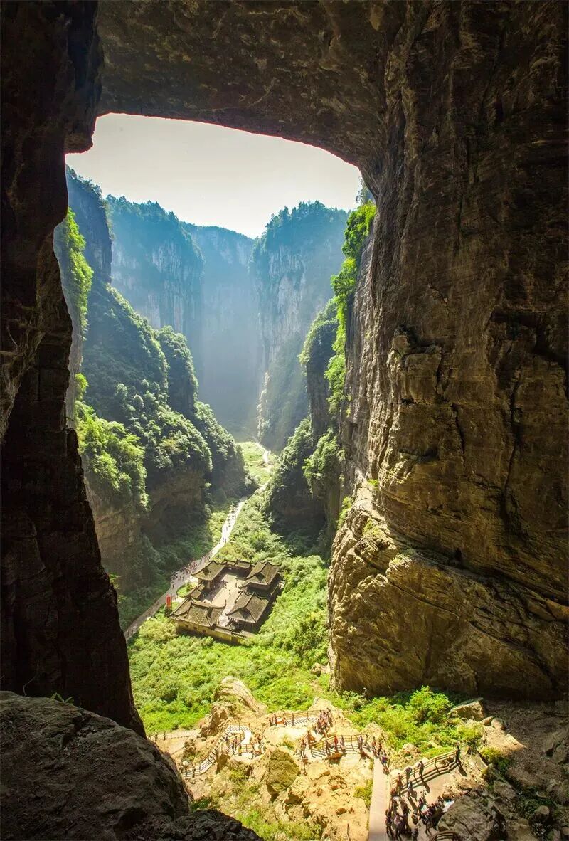 山峦叠嶂处,藏着自然的鬼斧神工。重庆武隆天生三桥,不是人为雕琢的景观,而是大地自发长成的奇迹。桥非桥,是洞顶坍塌之后,留下的巨大空腔,横跨于峡谷之上,如天门敞开,迎送日月。