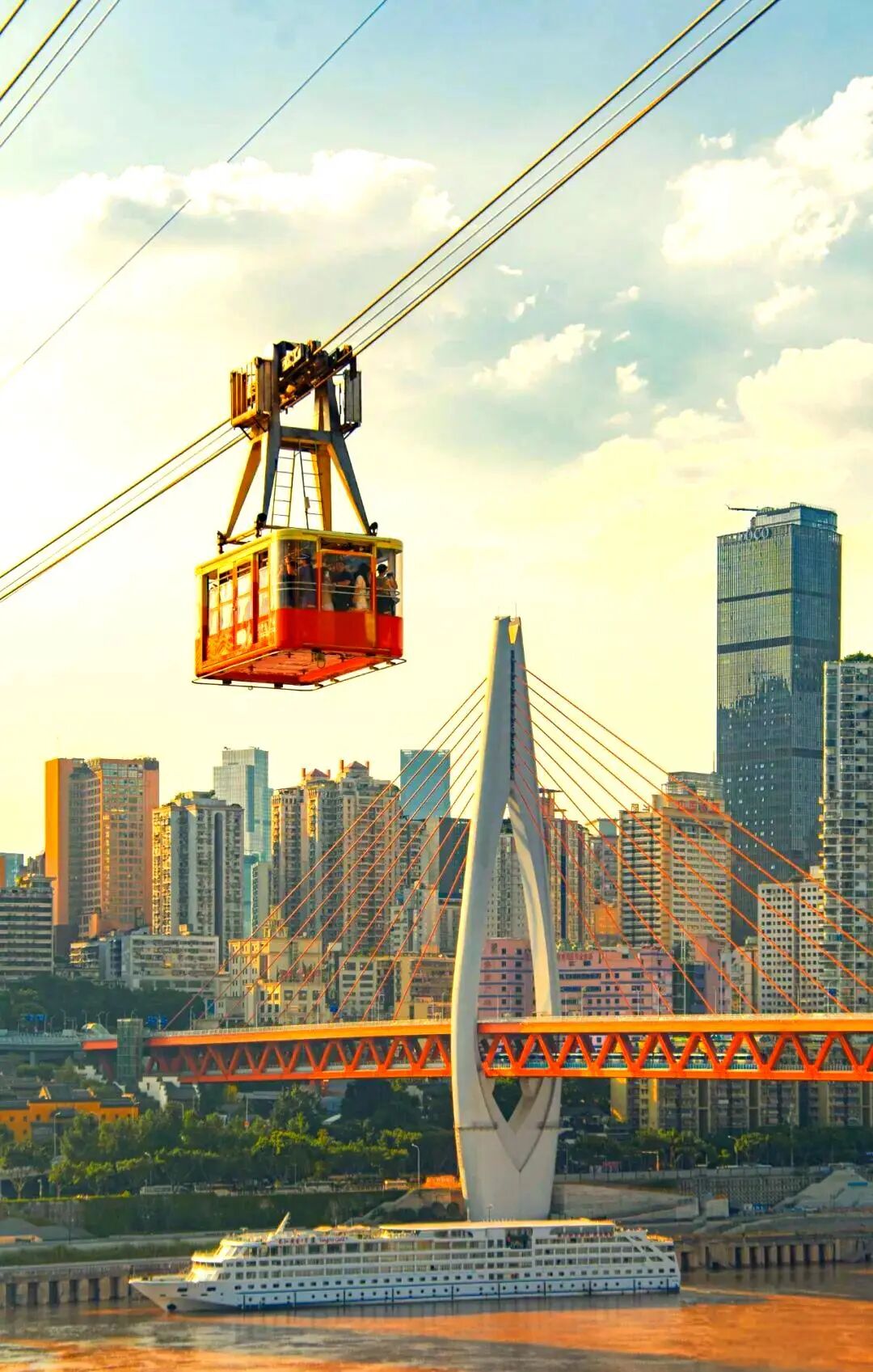 乘坐重庆长江索道可以俯瞰脚下滚滚长江流水,汹涌翻滚,轮船来来回回穿梭,展现出大自然的气势磅礴,呈现出一派运输繁忙的气象。大江两岸青山和城市的景色尽收眼底,一侧是古老的吊脚楼,一侧则是现代化的高楼大夏。一侧承载着城市历史的记忆,一侧责是展示现代化城市的繁荣。这种古老和现代化的对照 ,让这座城市展示出独特的魅力。