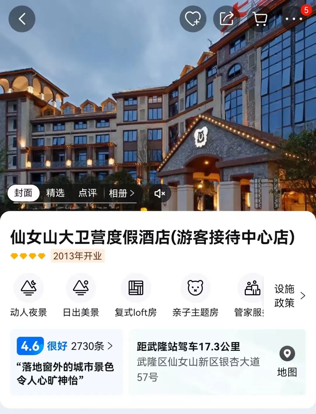仙女山大卫营度假酒店(游客接待中心店)或同级