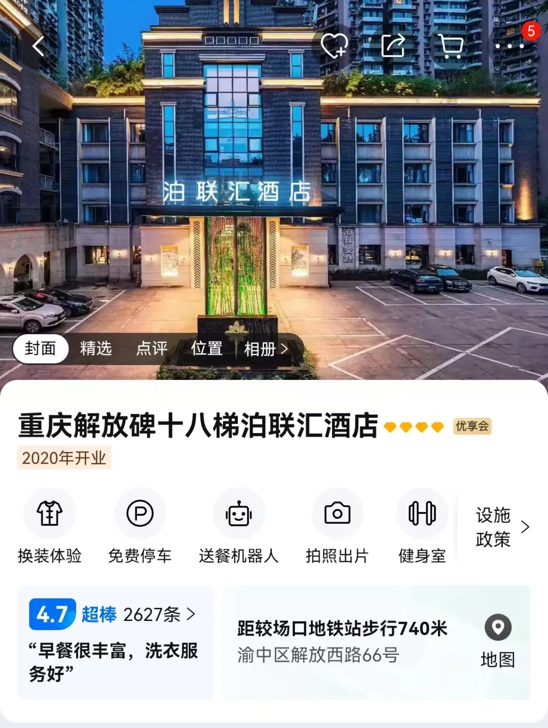 重庆解放碑十八梯泊联汇酒店或同级