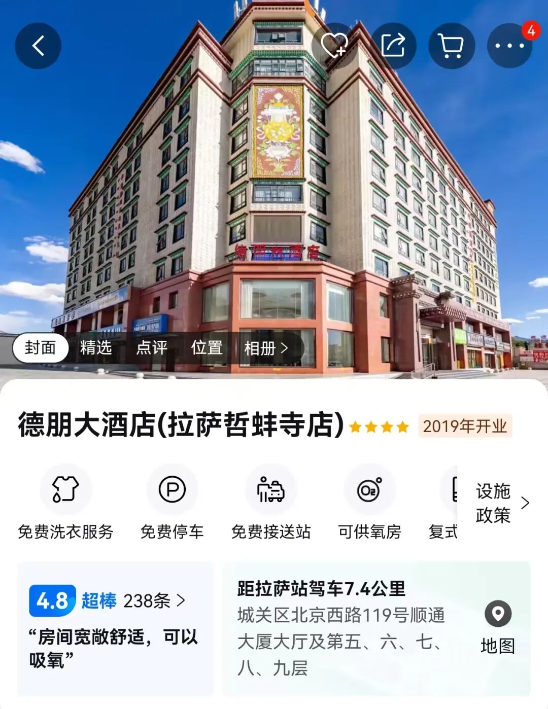 住宿:德朋大酒店(拉萨哲蚌寺店)或同级D4