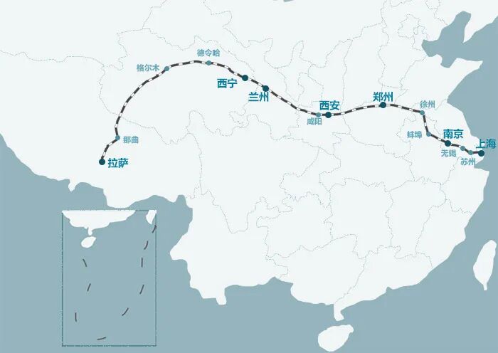 火车途经苏州、无锡、南京、蚌埠、徐州、郑州、洛阳、西安、咸阳、宝鸡、兰州,次日19:08驶进西宁站,停留20分钟换车底。火车到西宁站的时候会换有氧列车。你将在供氧车厢里对号入座,悄悄完成从平原到高原的“呼吸切换”。