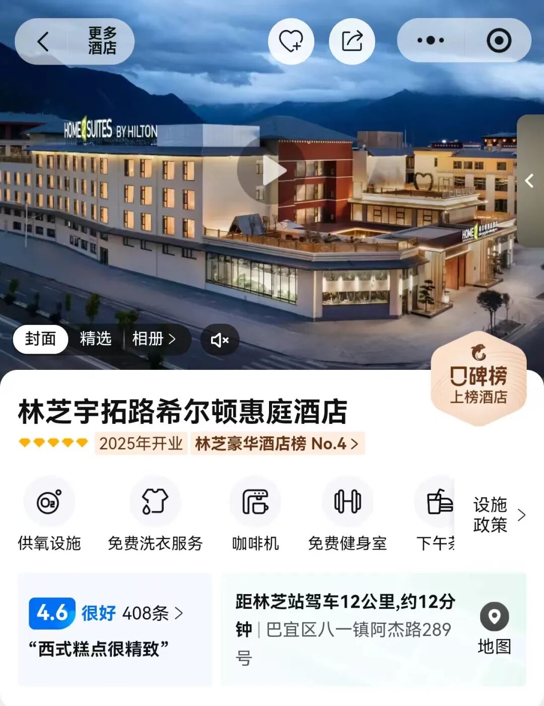 林芝宇拓路希尔顿惠庭酒店或同级
