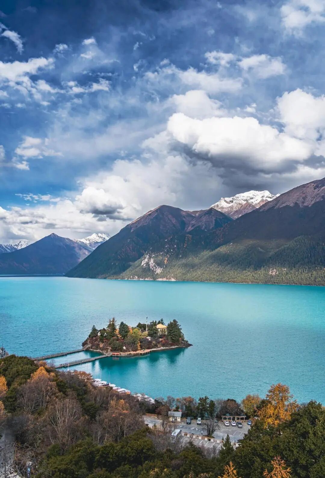 游览【巴松措·船游】(游览时间约1.5小时),又名措高湖,藏语中是“绿色的水”的意思,是红教的一处著名神湖和圣地。巴松措在1994年被评为国家风景名胜区,同时被世界旅游组织列入世界旅游景区(点),2017年成为西藏首个自然风景类国家AAAAA级景区。漫步湖心岛,岛上有红派宁玛派寺庙措宗寺。寺庙中供奉的是宁玛派创始人莲花生大士。巴松措有着许多莲花生大士的传说,因此尽管这里位置偏远且寺庙不大,但前来进香朝拜的信徒却络绎不绝。庙门前存有生殖崇拜的木刻,与信徒供奉的油灯,及类似台湾可烧松枝或柏枝的烟雾来祈福的金炉。此外,西藏寺院的外部可拍照,但内部不可拍照,入庙需脱鞋,与台湾寺庙不同的是其主殿内有二层,内层为供奉的主神,外层则祀奉各种神明,顺时钟绕行,殿内狭小低矮有时还弯腰才可绕行。岛上除措宗寺可参观外,还可沿着湖绕一圈,可见树木茂密,有千年青岗树与各种藤蔓、苔藓等缠绕树上。还可近看雪山,宛如置身如诗如画的烟雨江南中。